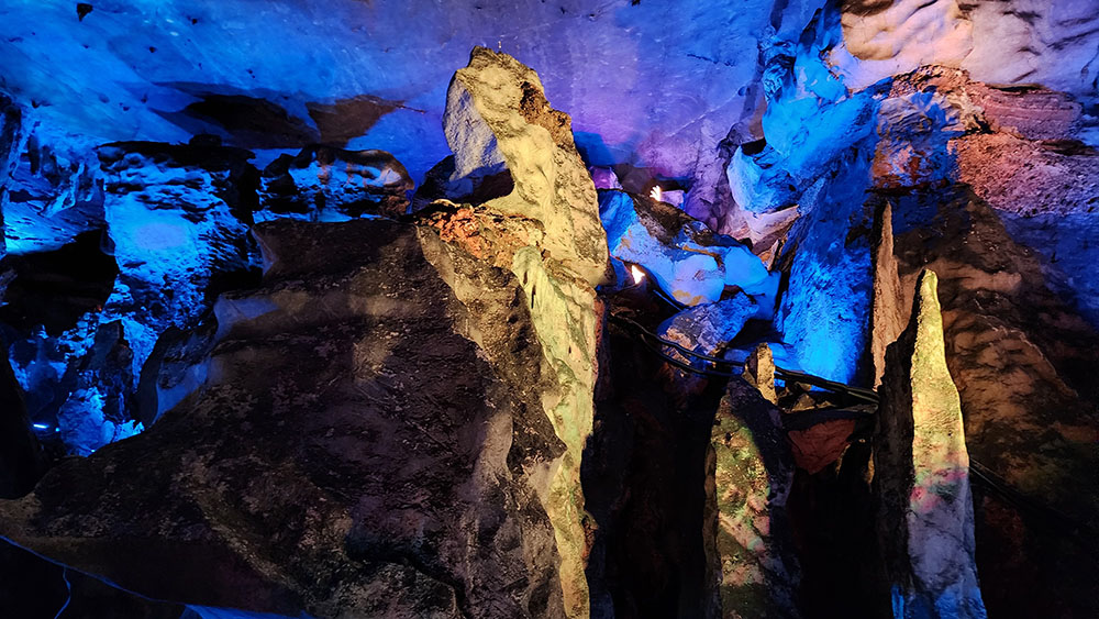 據導游小姐介紹,玉華洞總長約6公里,洞內有兩條通道,由藏禾洞、雷公洞、果子洞、黃 泥洞、溪源洞、白雲洞等6個支洞和石泉、井泉、靈泉等3條寬1至3米,深不及膝的小陰河組成。